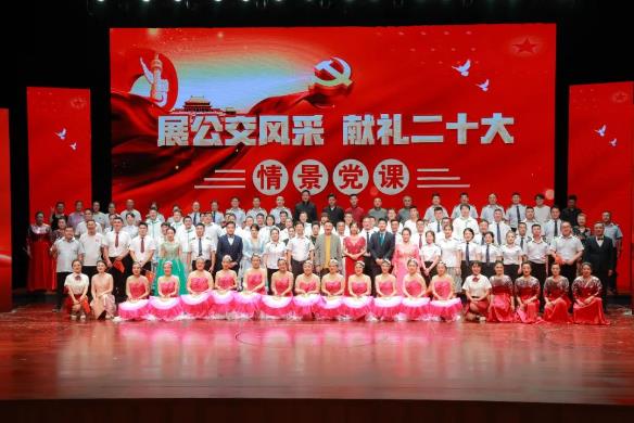 為激勵(lì)廣大黨員群眾以實(shí)際行動(dòng)迎接黨的二十大勝利召開(kāi),8月10日下午,徐州公交集團(tuán)成功舉辦“展公交風(fēng)采 獻(xiàn)禮二十大”情景黨課。市交控集團(tuán)黨委委員、紀(jì)委書(shū)記胡濤,市交通運(yùn)輸局宣傳教育處處長(zhǎng)高夫健,徐州廣播電視傳媒集團(tuán)總編室主任劉建玲,市公交集團(tuán)外部董事,市交控集團(tuán)黨建工作部、群眾工作部部門(mén)領(lǐng)導(dǎo),以及公交集團(tuán)黨委班子成員、先進(jìn)勞模、職工代表共450余人出席并觀看演出。