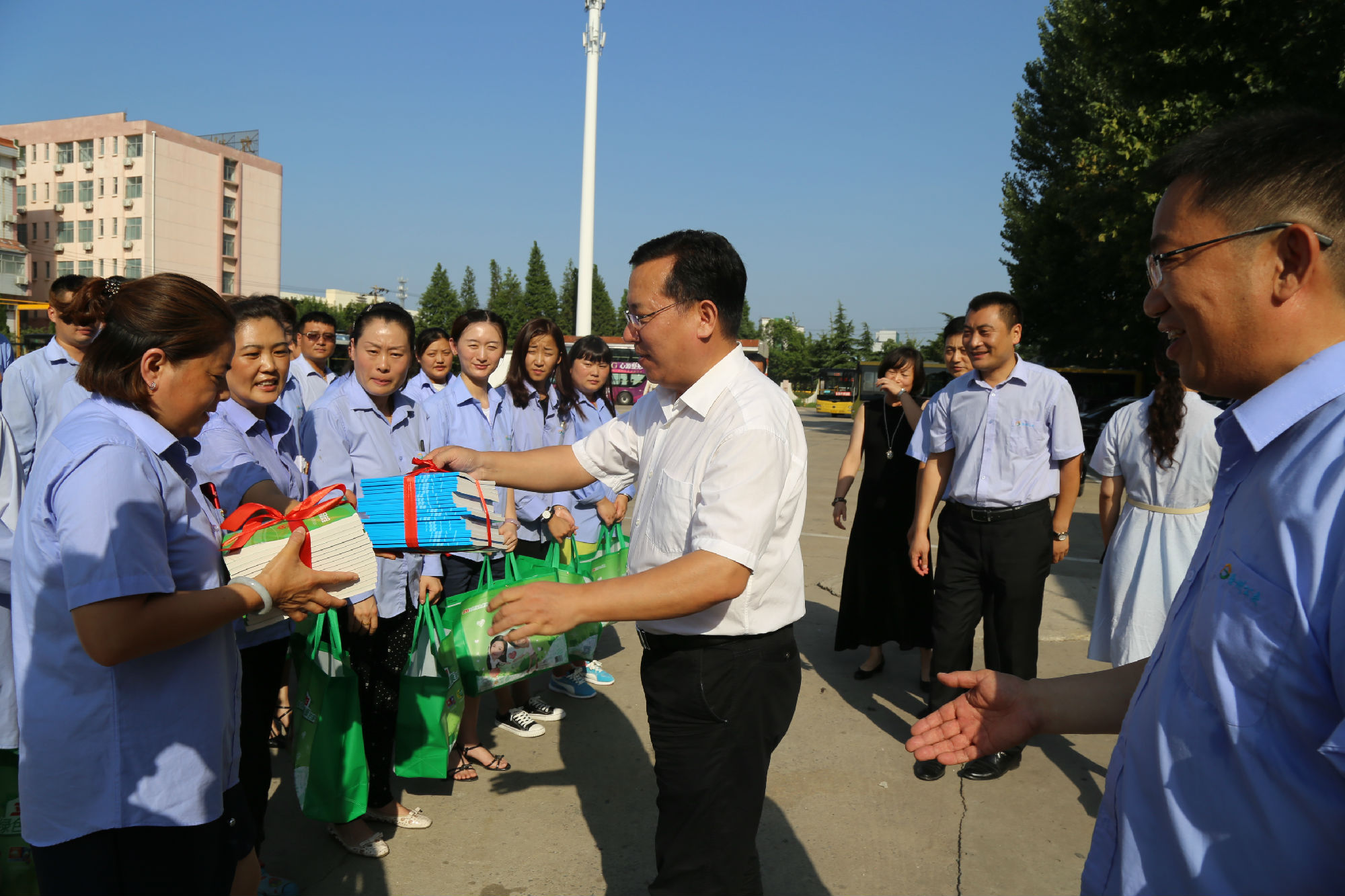 劉洪印親切地與公交駕駛員一一握手,對(duì)公交員工克服酷熱天氣堅(jiān)守工作崗位,堅(jiān)持為市民提供熱情周到的服務(wù),表示誠摯謝意和深切問候,并特別叮囑大家要注意勞逸結(jié)合,注意身體健康,杜絕疲勞駕駛,為市民安全出行保駕護(hù)航。隨后他向在場的公交員工送上了慰問品和工會(huì)書籍。公交員工接過慰問品,紛紛激動(dòng)表示:“謝謝領(lǐng)導(dǎo)關(guān)心!謝謝!”