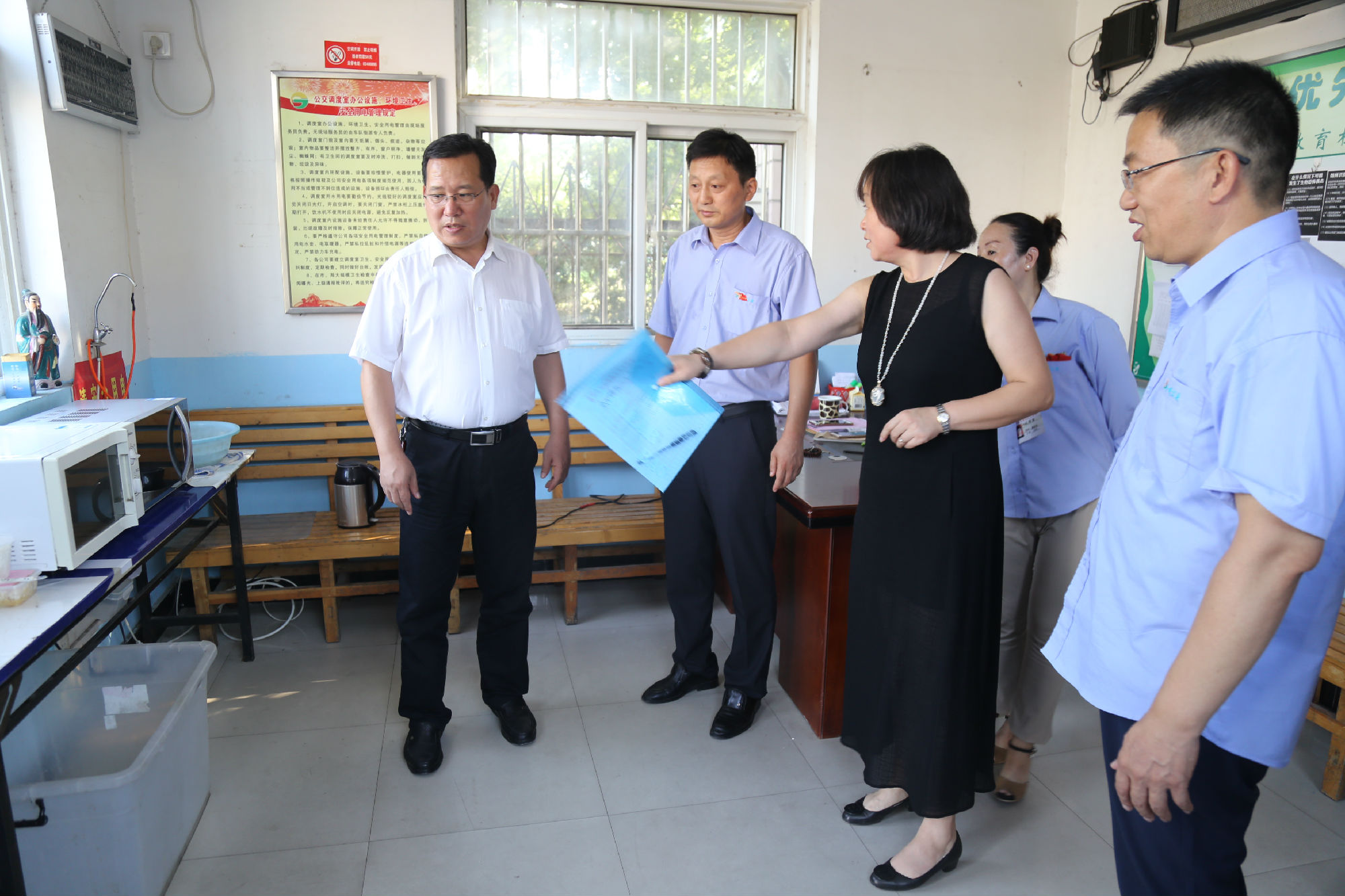接著,劉洪印走進(jìn)調(diào)度室,察看了調(diào)度室的工作環(huán)境和降溫措施,關(guān)切地詳細(xì)詢問了駕駛員的生產(chǎn)生活、用餐休息等情況,并對(duì)公交設(shè)置愛心驛站,關(guān)心關(guān)愛乘客和環(huán)衛(wèi)等室外工作者給予了高度評(píng)價(jià)。